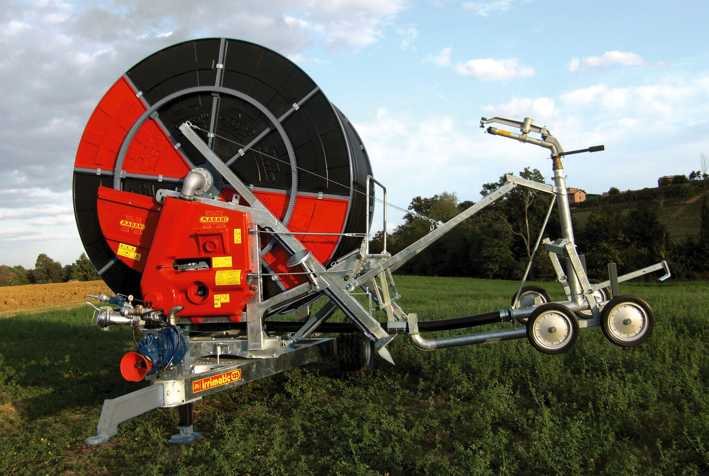 - Carrello porta irrigatore zincato su ruote a carreggiata variabile